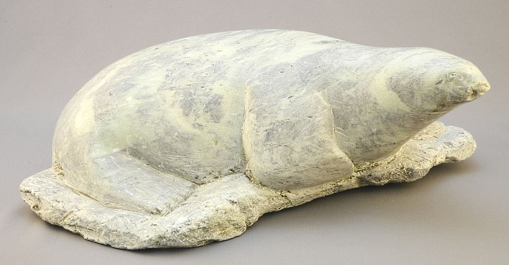 LOT 235 Inuit-Style Carving of a Sea Lion, Tusk Missing, 13 1/2" Length. Estimate: $100 - $200 Auction Date: Tuesday, April 05 2022 at 6:00 PM