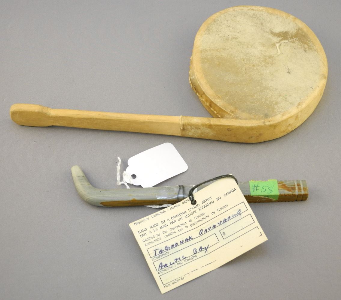 LOT 298 Inuit Stone Carving & a Rattle, Rattle 9" Length. Estimate: $60 - $120 Sold For: $30 Auction Date: Tuesday, April 05 2022 at 6:00 PM