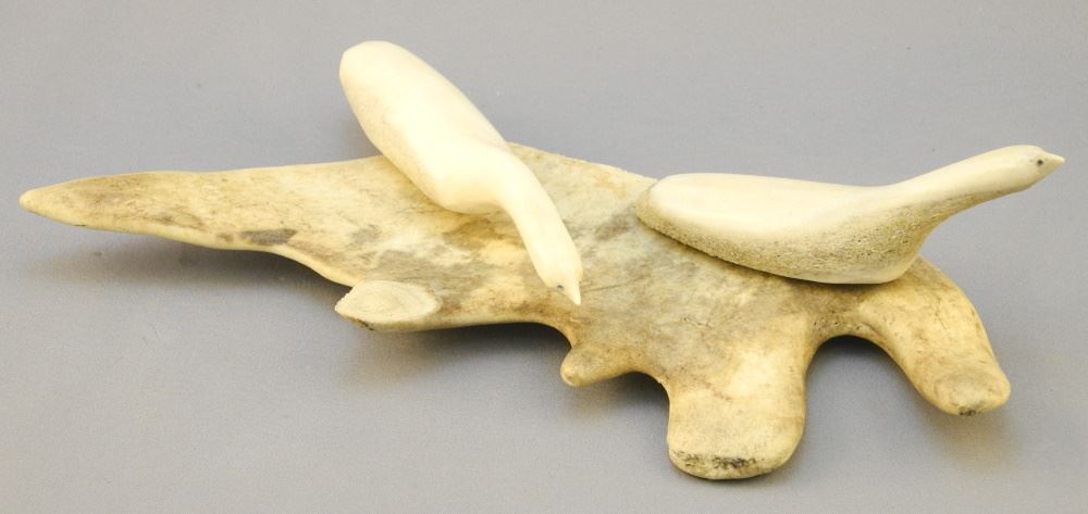 LOT 290 2 Inuit Antler Carvings, Seal Hunter & Pair of Birds, Largest 8 1/4"L. Estimate: $80 - $160 Sold For: $60 Auction Date: Tuesday, April 05 2022 at 6:00 PM