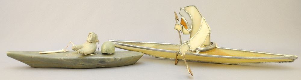 LOT 196 Inuit Stone Carving of a Man In a Kayak & a Stained Glass Sculpture of a Man in a Kayak, 12"L. Estimate: $80 - $150 Sold For: $40 Auction Date: Tuesday, April 05 2022 at 6:00 PM