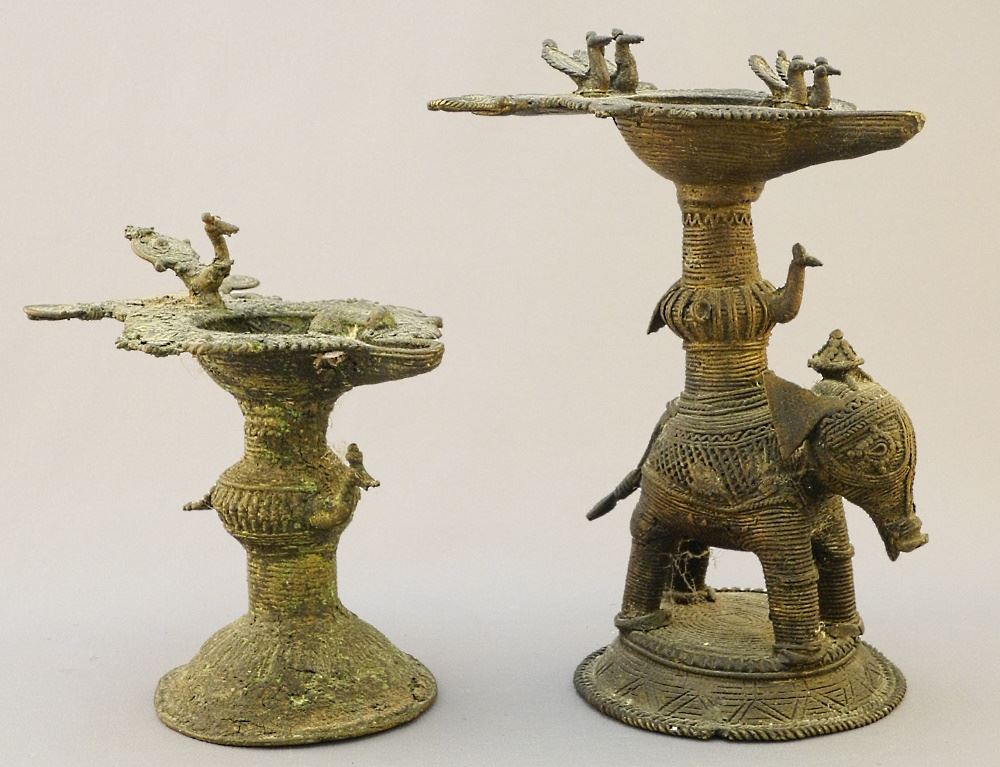 LOT 285 2 Indian Bronze Oil Lamps, 5 1/4" - 7 1/2" High. Estimate: $60 - $100 Sold For: $100 Auction Date: Tuesday, April 05 2022 at 6:00 PM