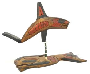 LOT 277 Coast Salish Wolf & Orca Sculpture Signed Leonard Sylvester, 14" x 18 1/2" x 8". Estimate: $200 - $300 Auction Date: Tuesday, April 05 2022 at 6:00 PM