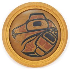 LOT 217 Northwest Coast Leather Roundel Signed Steve C. Evans 1991, 11 1/4", "Raven Stealing Sun". Estimate: $80 - $120 Sold For: $160 Auction Date: Tuesday, April 05 2022 at 6:00 PM
