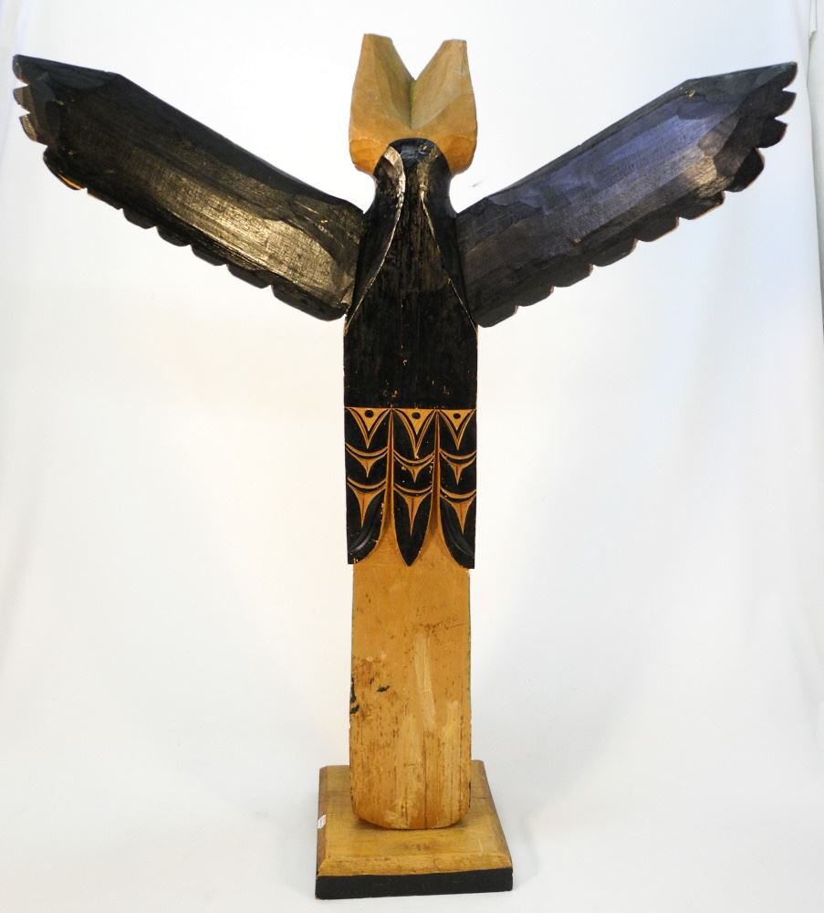 Nuu-Chah-Nulth Model Totem Pole, Unsigned, 37 3/4" High, Wing Restored.