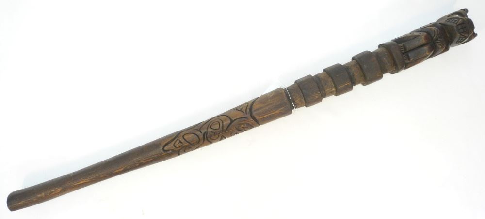 Northwest Coast "Bear" Talking Stick Attributed to Narcisse, 42 1/2"L.