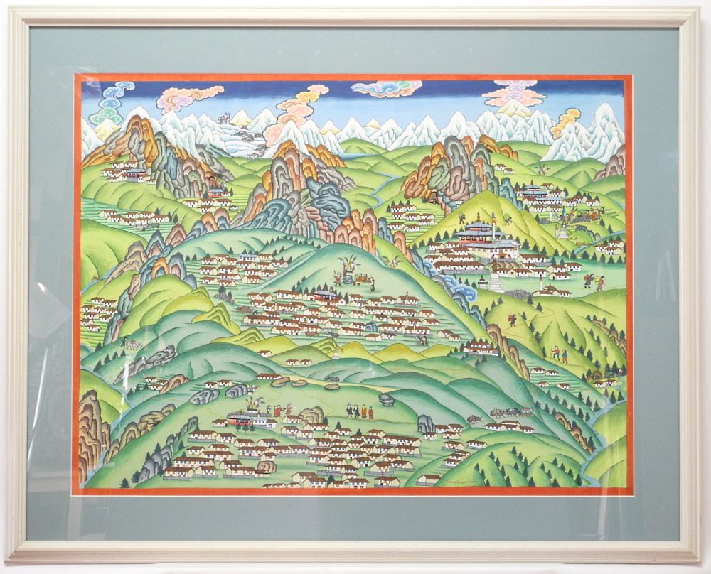 Tibetan Sherpa Painting Signed Purba Sonam, 30" x 22 1/4".