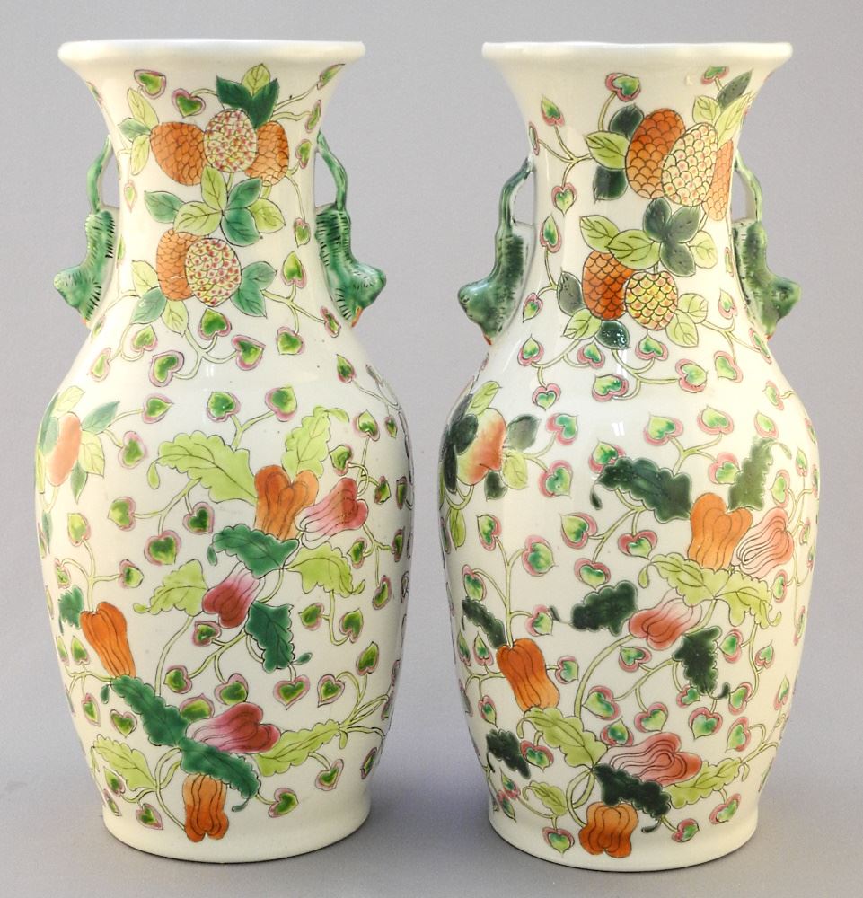 Pair of Chinese Enamelled Porcelain "Fruits" Vases, 10 1/8" High.
