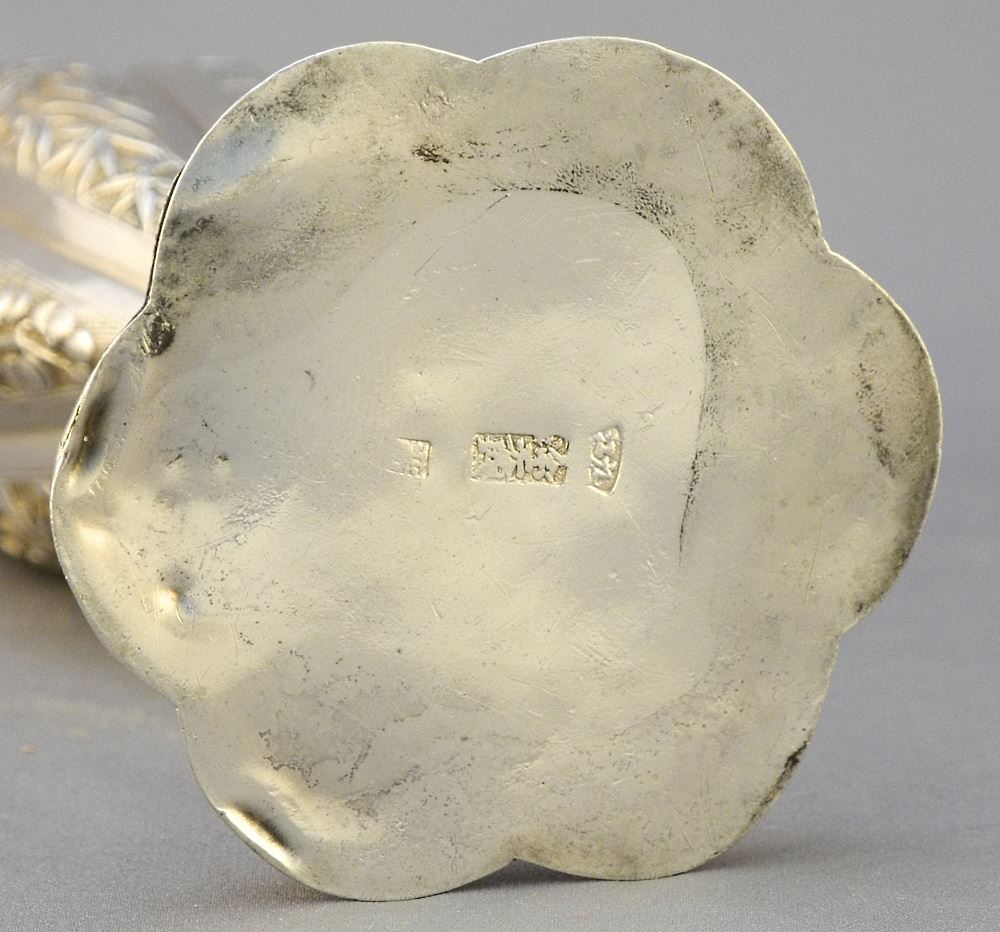 Chinese Silver Lobed Bud Vase, 5" High, as Found.