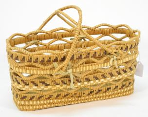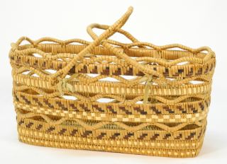 LOT 179 Salish Openwork Shopping Basket, 14" Wide. Estimate: $150 - $200 Auction Date: Tuesday, June 21 2022 at 6:00 PM