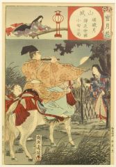 Japanese Woodblock Print Attributed to Chikanobu, 13" x 9", Musician on Horseback".