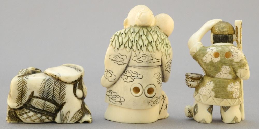LOT 169 3 Japanese Figural Netsukes, No Export. Estimate: $60 - $100 Sold For: $60 Auction Date: Tuesday, June 21 2022 at 6:00 PM