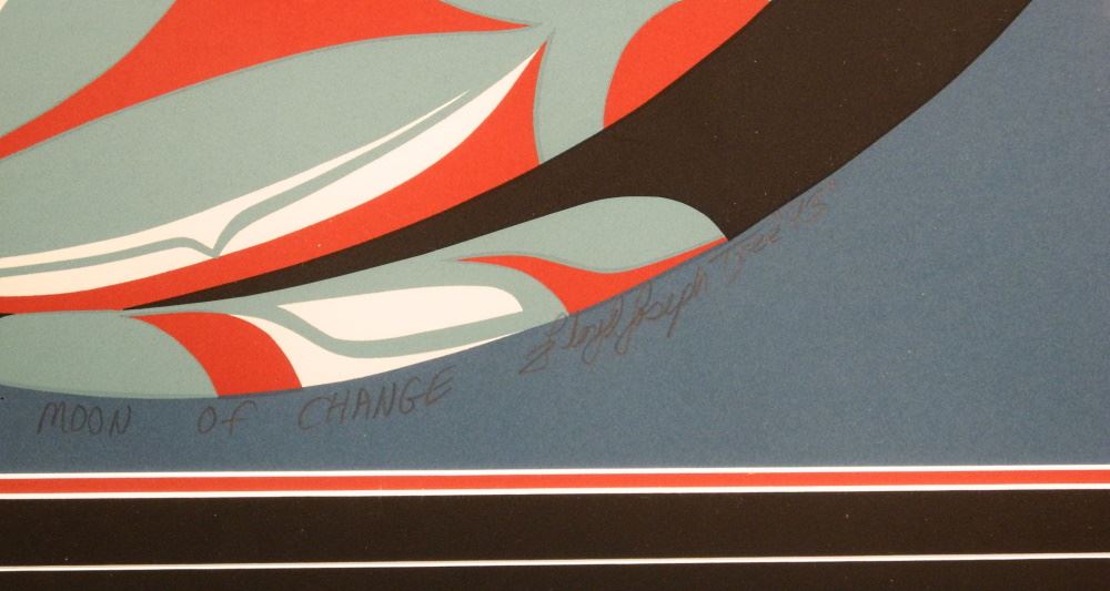 Salish Serigraph Signed Floyd Joseph 1993, 22" x 22 1/2", "Moon of Change", A/P #9/18.