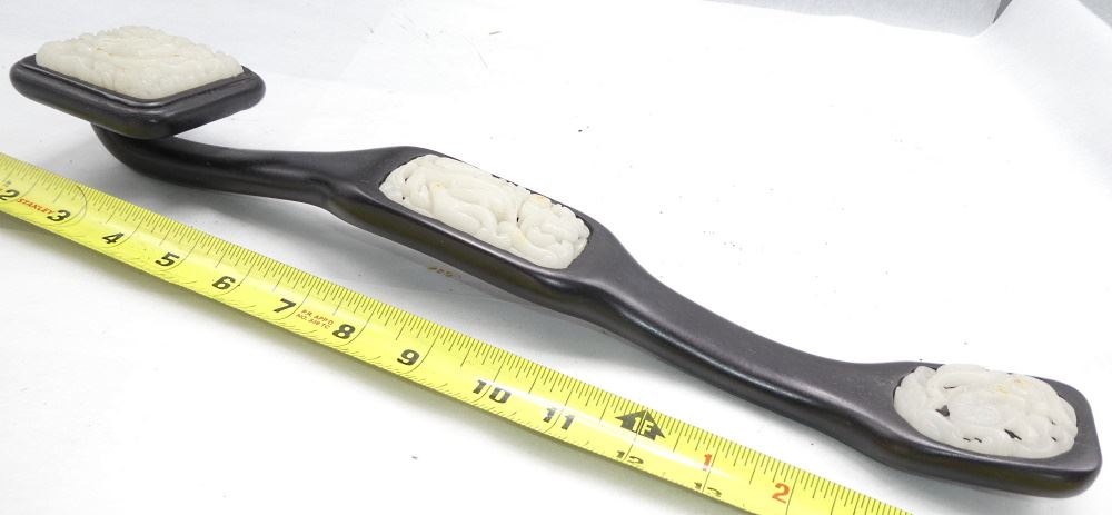 LOT 274 Openwork White Jade Inset Purple Wood Sceptre, 16 1/2" Length, 20th C Estimate: $200 - $300 Sold For: $240 Auction Date: Tuesday, August 16 2022 at 6:00 PM