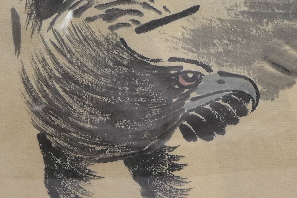 Framed Ink on Paper Eagle Painting, 12 1/2" x 9 1/2", 20th C.