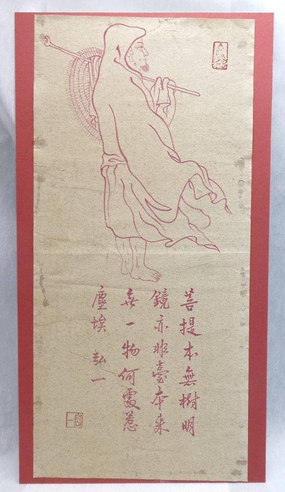 Cinnabar Painting of High Monk, After Master Hung Yi, 19" x 9", 20th C.