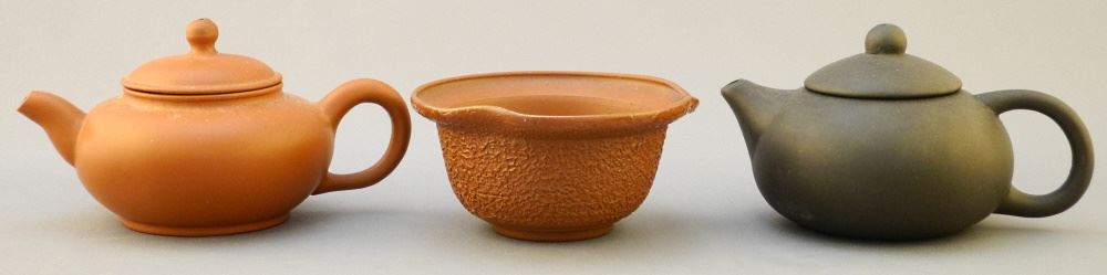 LOT 238 4 Yixing Ware Teapots & a Spouted Cup. Estimate: $100 - $200 Auction Date: Tuesday, August 16 2022 at 6:00 PM