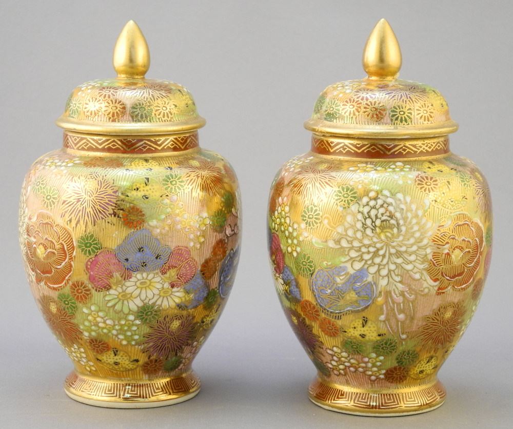 Pair of Japanese Covered Imari Vases & a Bowl, 8 1/4" Diameter, Condition Noted.