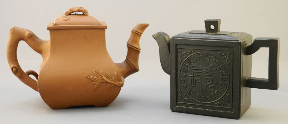 LOT 68 2 Yixing Ware Quadrangular Teapots. Estimate: $150 - $200 Auction Date: Tuesday, August 16 2022 at 6:00 PM