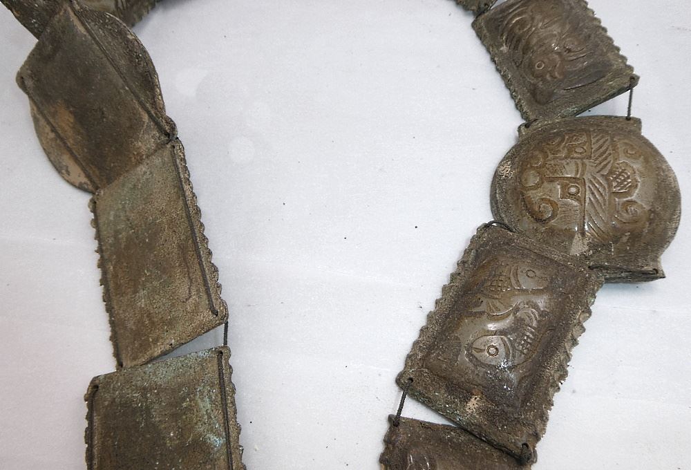 White Jade Inset Bronze Warring State Belt, 32 1/2" Length, 20th C.
