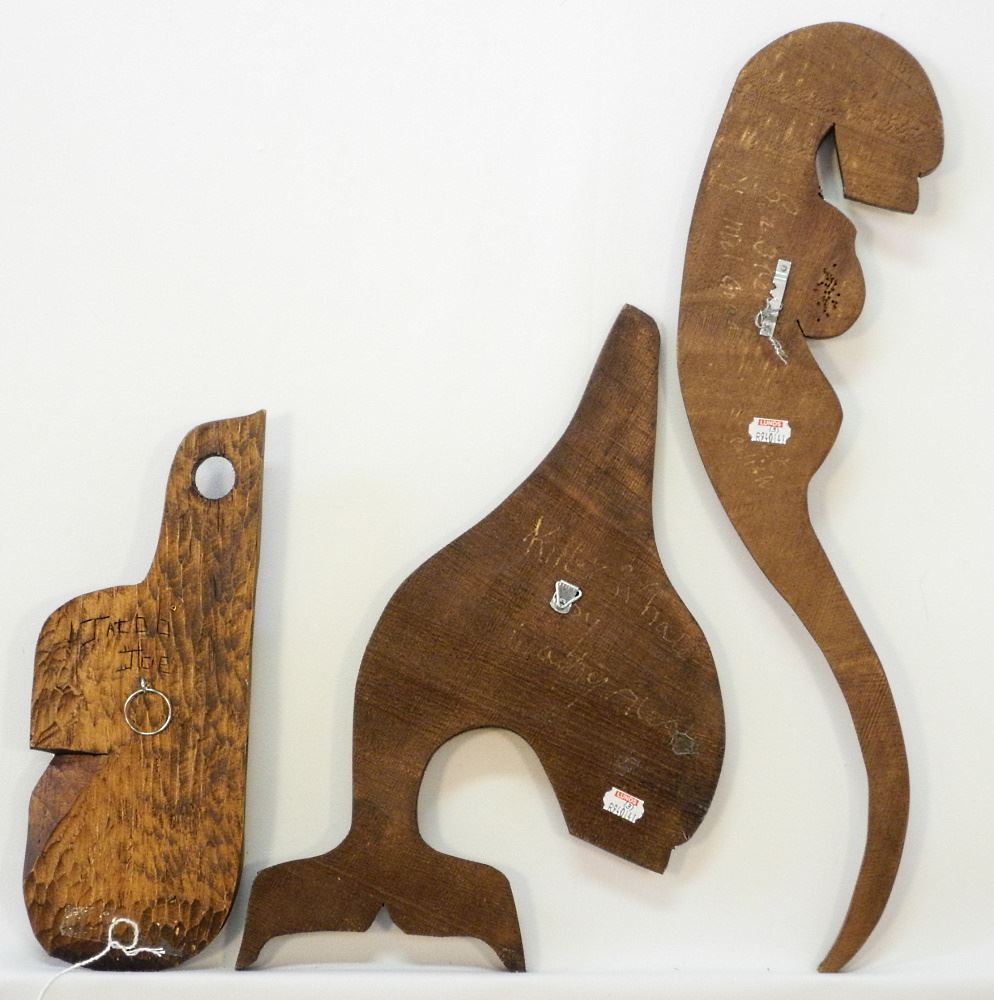 3 Northwest Coast Carvings with Mother of Pearl Inlays, 19 1/2"H, Various Artists.