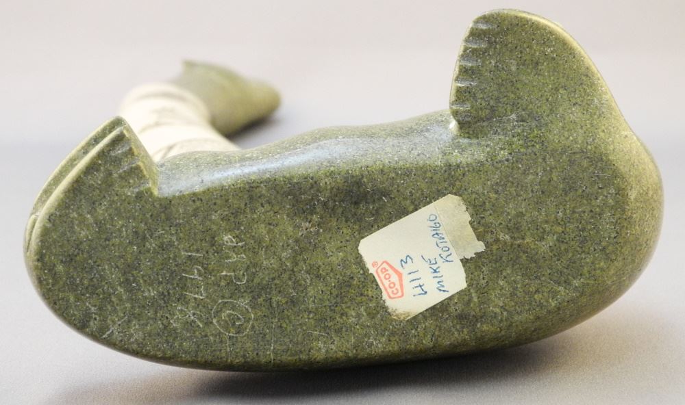 LOT 37 Stone & Antler Transformation Totem Attrib.to Mike Kotaigo 1978, Signed w/ Syllabics, chip, 12 7/8 Estimate: $200 - $300 Sold For: $260 Auction Date: Tuesday, August 16 2022 at 6:00 PM