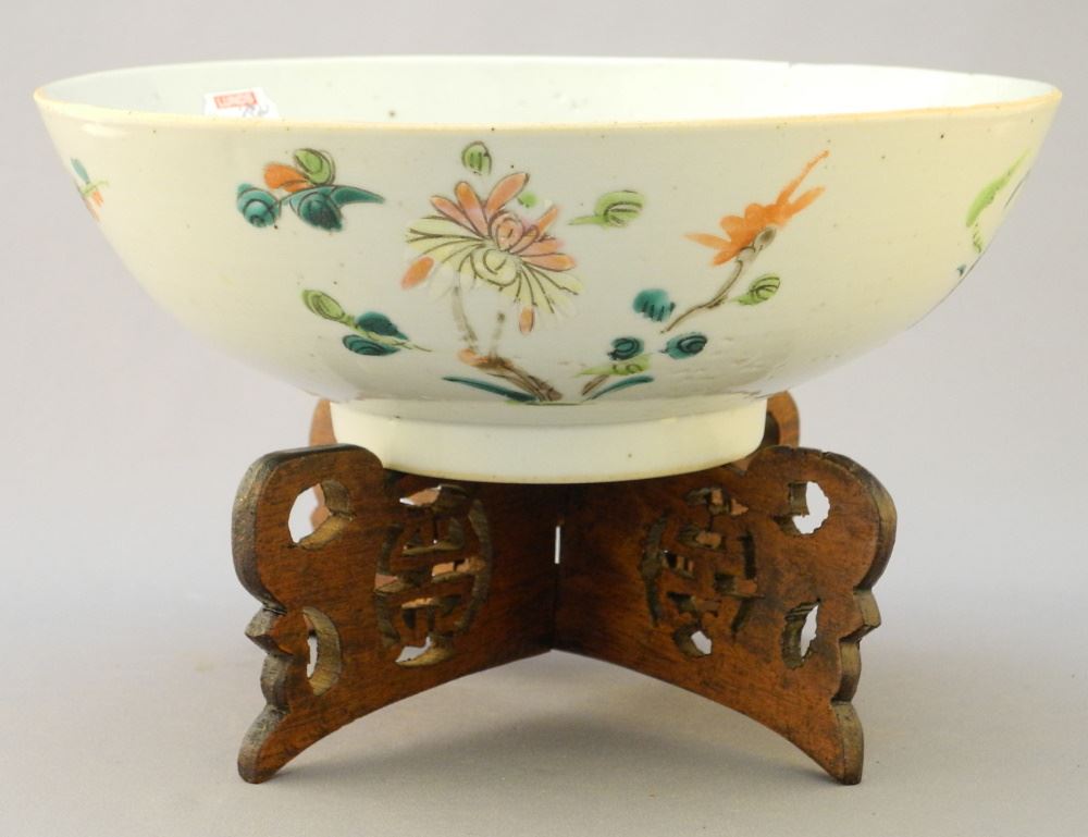 2 Pieces of Chinese Porcelain: Bulb Trough (8 7/8"L) & Bowl with Stand, 8 1/4" Diameter.