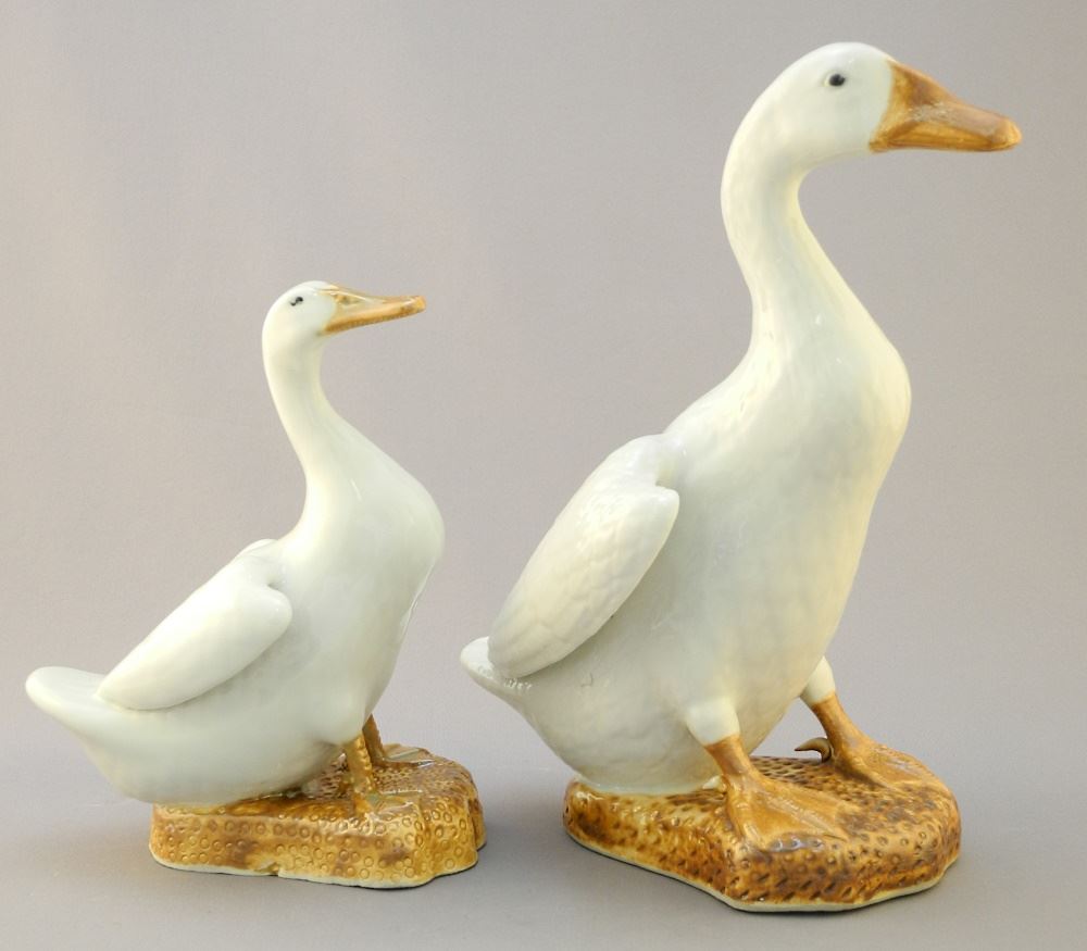 Two Chinese Export-Style Porcelain Geese 9" & 6 1/2" High.