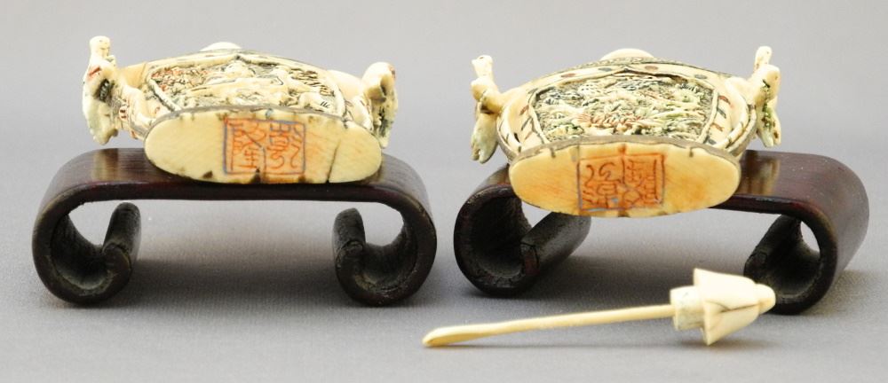 LOT 312 Pair of Chinese Polychrome Snuff Bottles, 2 7/8" High, No Export, with Stands. Estimate: $100 - $200 Sold For: $130 Auction Date: Tuesday, August 16 2022 at 6:00 PM