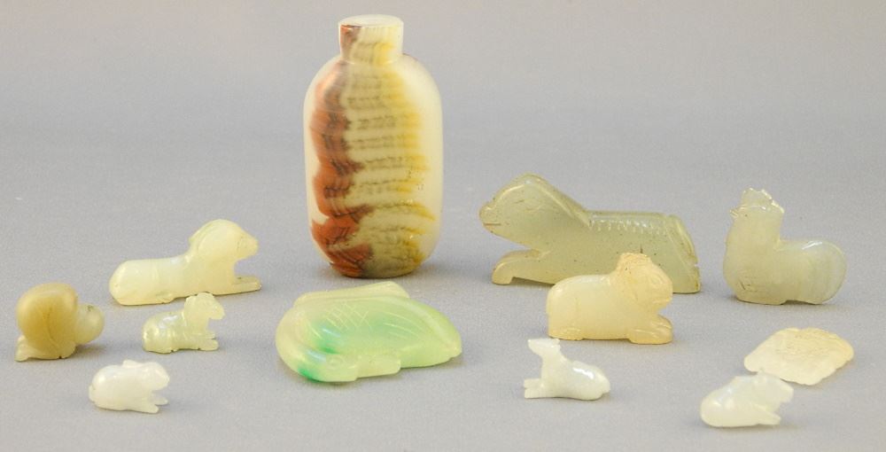 LOT 157 Ming & Qing Dynasty Collection of Carved Animals, Agate Snuff Bottle & Duck- Apple Green & White Estimate: $100 - $150 Auction Date: Tuesday, November 29 2022 at 6:00 PM