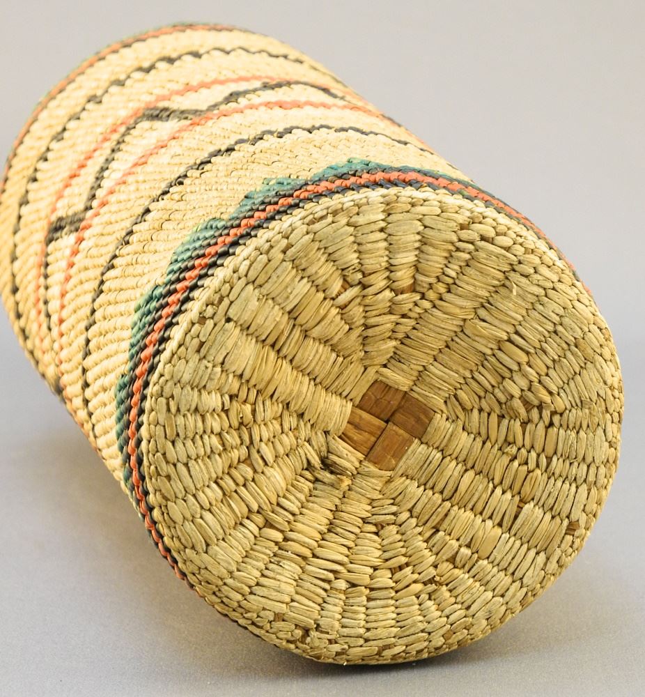 LOT 4 Nuu-Chah-Nulth Basketry Wrapped Bottle, 12" High. Estimate: $100 - $200 Sold For: $130 Auction Date: Tuesday, November 29 2022 at 6:00 PM