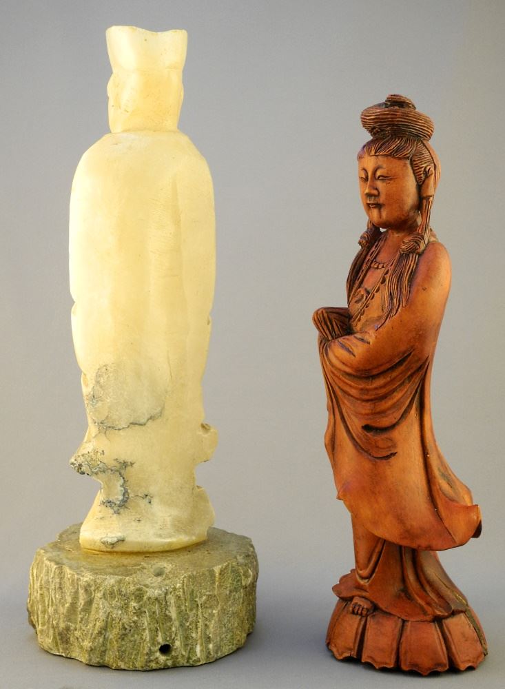 2 Asian Carved Figures: 1 Stone & 1 Wood.
