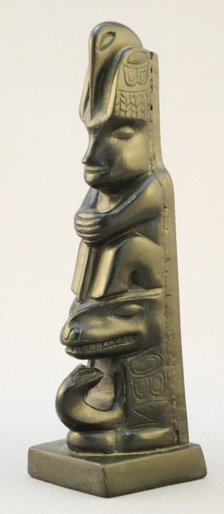 LOT 66 Argillite Carving Signed Mrs.Mildred Pollard, 5 5/8" High, 3 Figure Model Pole Engraved with ID#. Estimate: $100 - $200 Sold For: $350 Auction Date: Tuesday, November 29 2022 at 6:00 PM