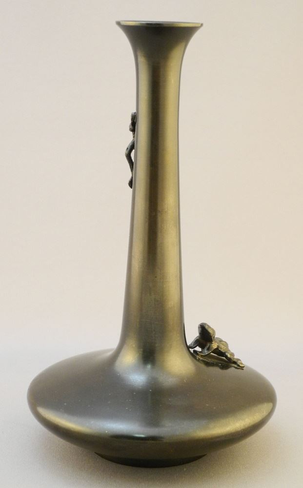 Japanese Brass & Bronze Bud Vase, Circa 1921-1941, 8" High.