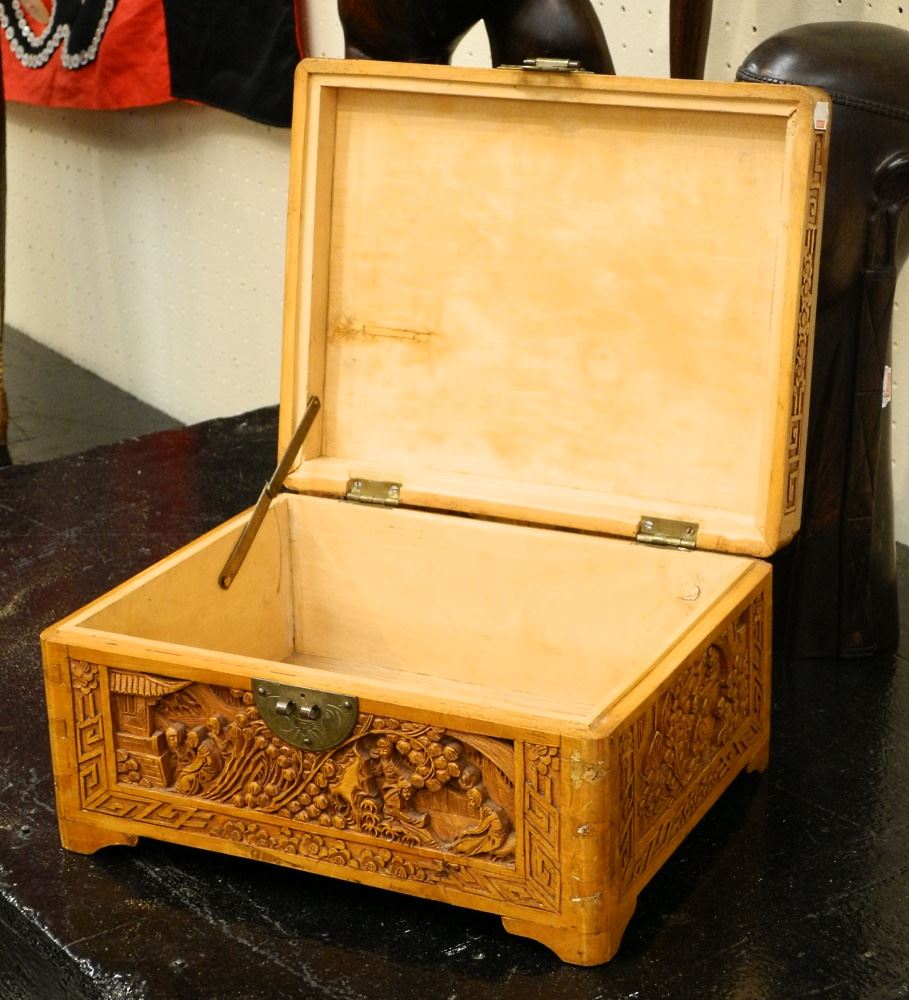 LOT 224 Chinese Carved Wood Box, 10 3/8". Estimate: $100 - $200 Auction Date: Tuesday, November 29 2022 at 6:00 PM