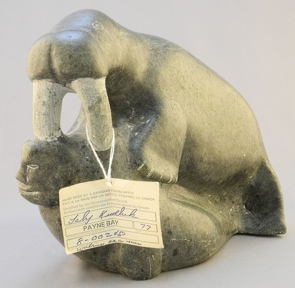 Soapstone Walrus Carving, Signed, 8 1/4" x 9".