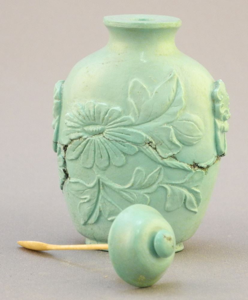 Turquoise Snuff Bottle, Circular Fissure Noted, 2 1/2" High.