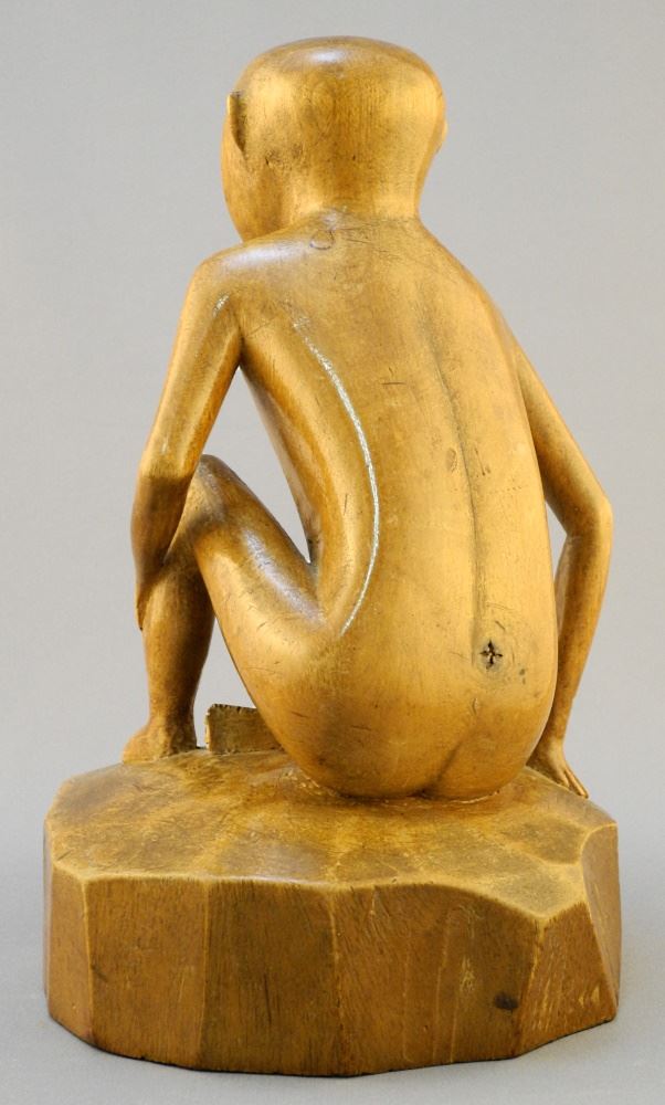Wood Carving of a Seated Figure, Unsigned, 8 3/4" High.