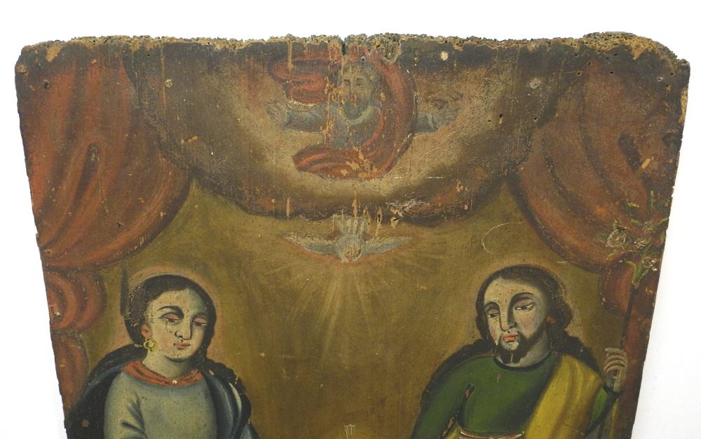 LOT 30 South American Santos Painting on Panel, 29 1/2" x 21 1/4". Estimate: $150 - $300 Sold For: $300 Auction Date: Tuesday, February 14 2023 at 4:00 PM