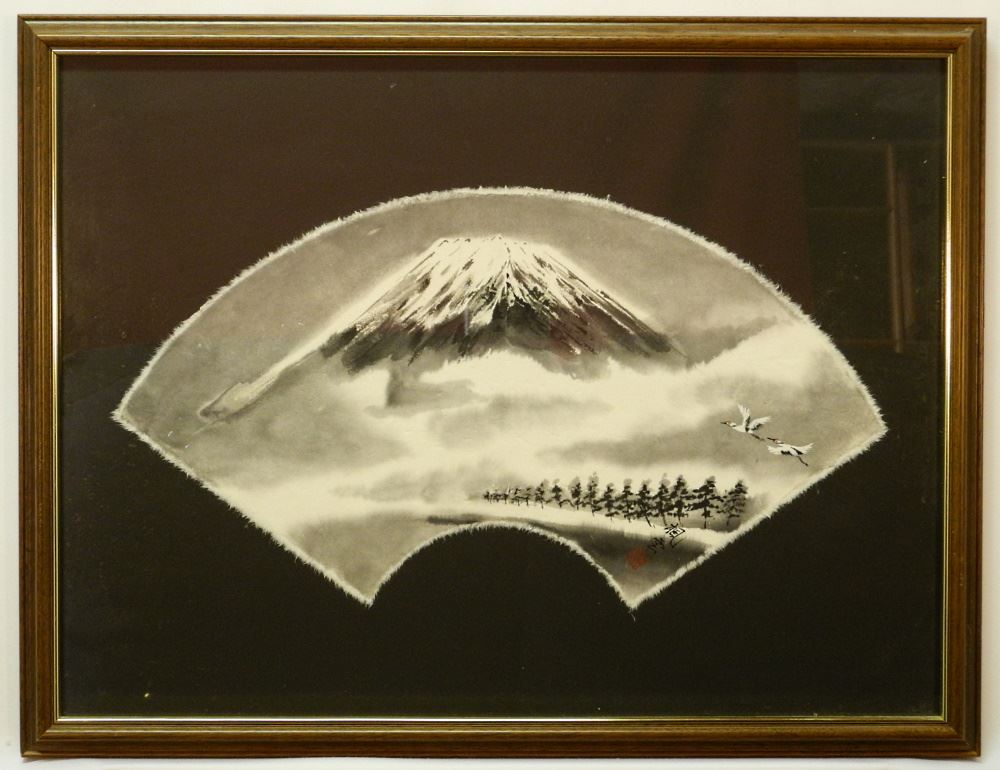 LOT 239 Japanese Fan Painting, "Mt. Fuji" 11 1/2"X20 1/2". Estimate: $150 - $250 Auction Date: Tuesday, February 14 2023 at 4:00 PM