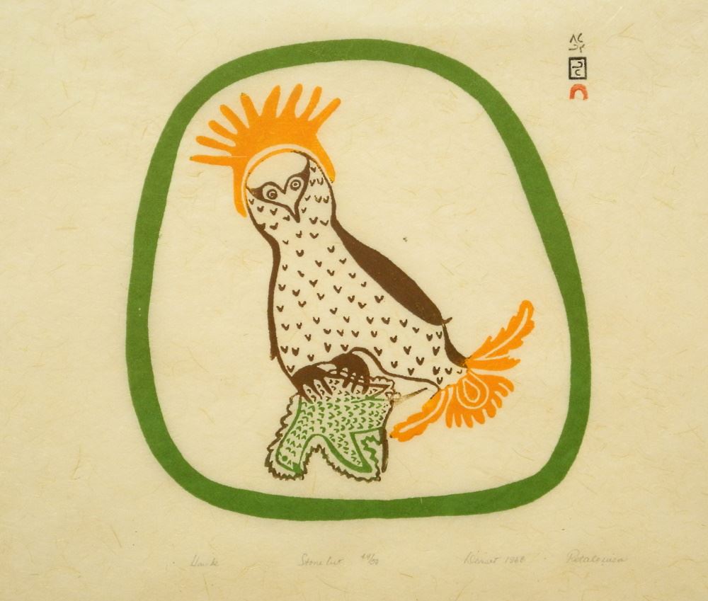 Stone Cut Signed "Pitalouisa 1968", "Hawk" #49 16 1/2" X 22".