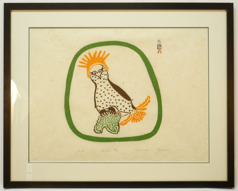 LOT 20 Stone Cut Signed "Pitalouisa 1968", "Hawk" #49 16 1/2" X 22". Estimate: $100 - $200 Auction Date: Tuesday, February 14 2023 at 4:00 PM