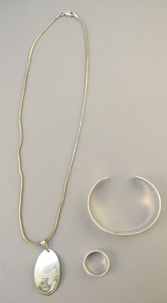 3 Coast Salish Silver Items, Attributed to Richard Krentz Cuff / Ring / Pendant 28.9