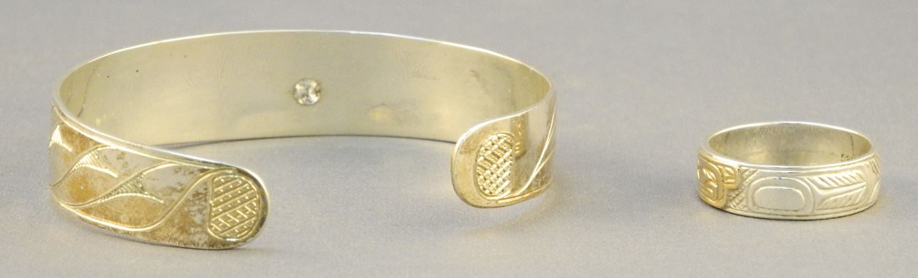 LOT 342 3 Coast Salish Silver Items, Attributed to Richard Krentz Cuff / Ring / Pendant 28.9 Estimate: $200 - $300 Sold For: $275 Auction Date: Tuesday, February 14 2023 at 4:00 PM