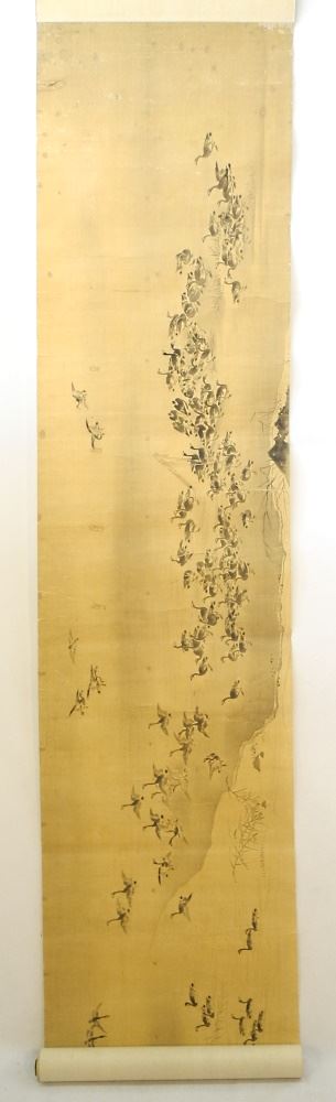 Ink on Silk Narrative Scroll Attrib. to Tohan, Geese Subject 15"X138".