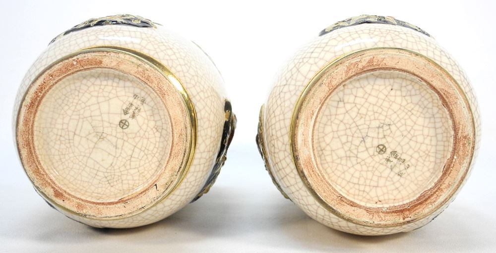 Pair of Satsuma Vases with Molded Figures, 10" high.