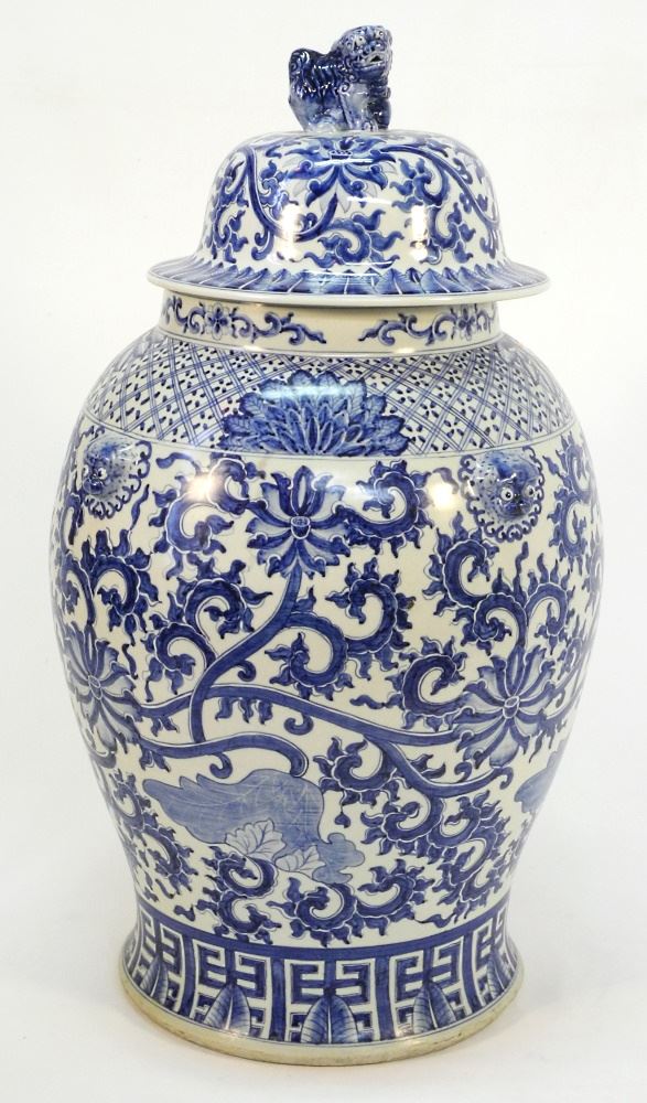 Chinese Blue & White Porcelain Covered Vase, 24"H.