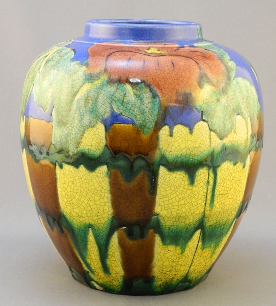 Japanese Oviform Pottery Vase, All Over Crazing Noted, 7 3/8".