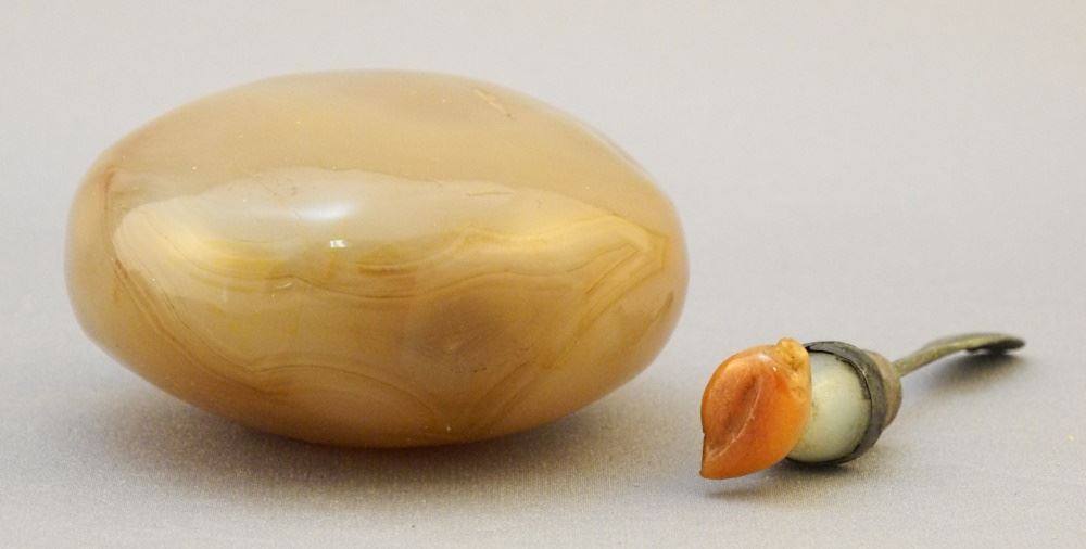 LOT 125 Chinese Agate Snuff Bottle with Agate Stopper, 2 1/2"H. Estimate: $300 - $500 Auction Date: Tuesday, March 28 2023 at 4:00 PM
