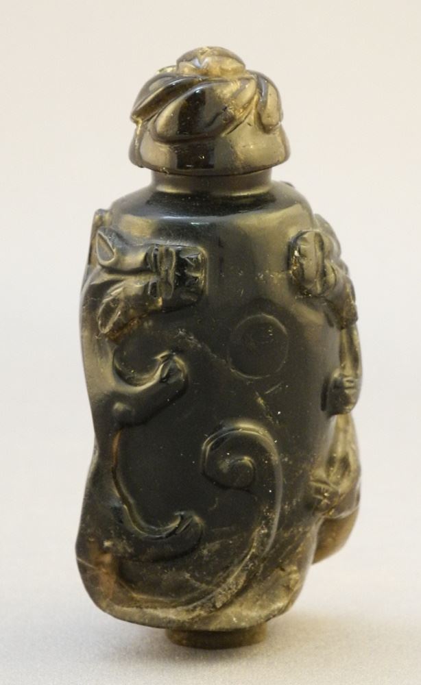 Chinese Carved Agate "Chilongs" Snuff Bottle, 2 1/2"H.