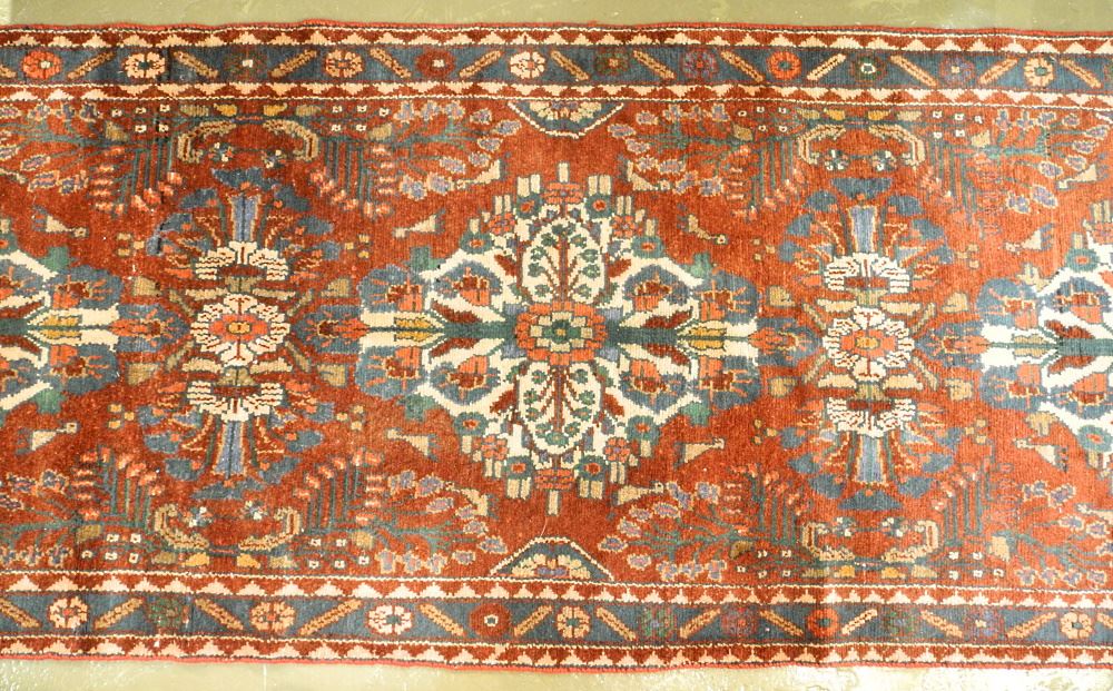 LOT 237 Hamedan Runner, Approximately 10'4" x 3'5". Estimate: $200 - $300 Sold For: $180 Auction Date: Tuesday, March 28 2023 at 4:00 PM